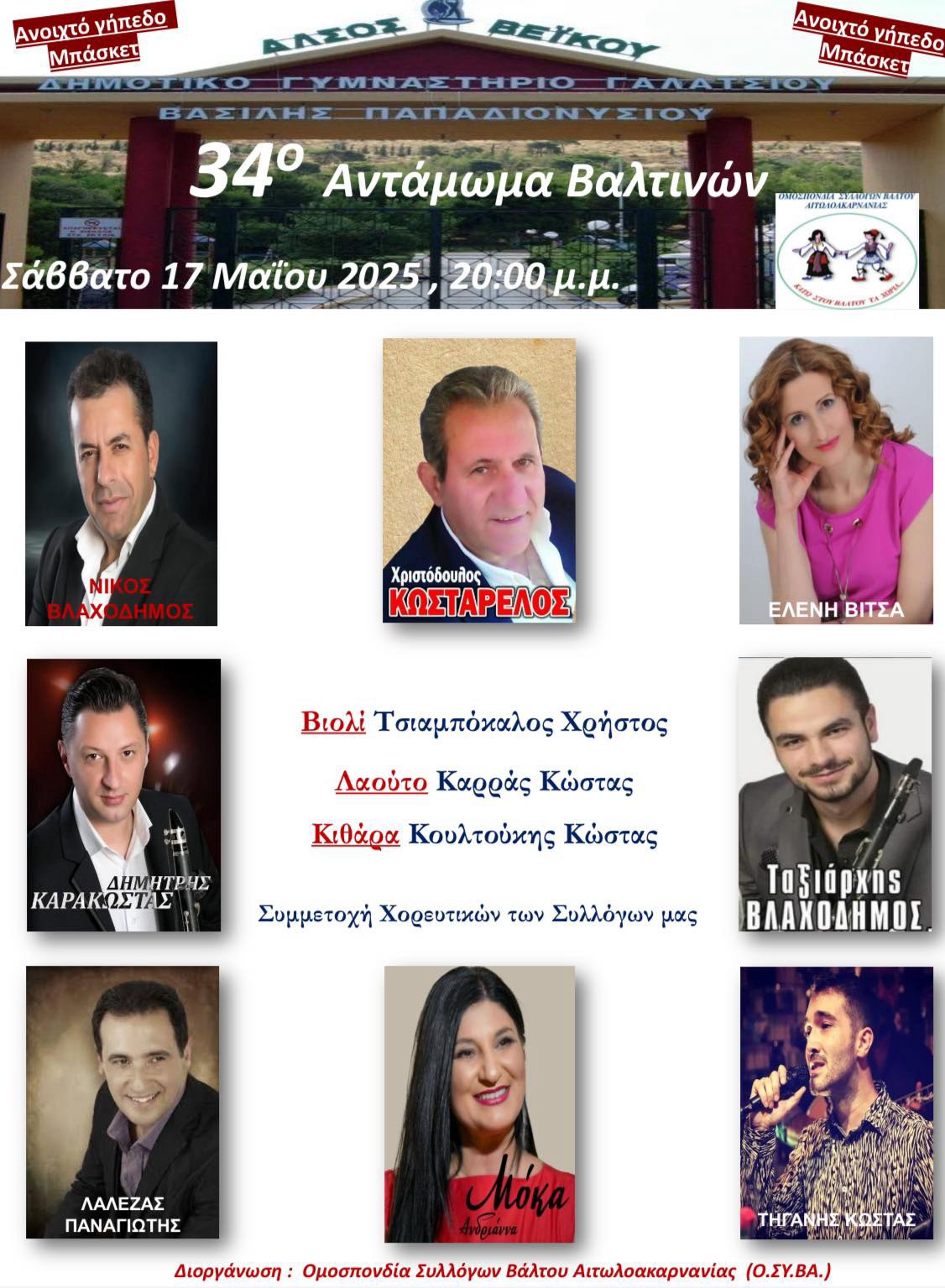 Η εκδήλωση θα πραγματοποιηθεί το Σάββατο 17 Μαΐου 2025 και ώρα 21:00 στο Άλσος Βεΐκου Γαλατσίου (ανοιχτό γήπεδο μπάσκετ).