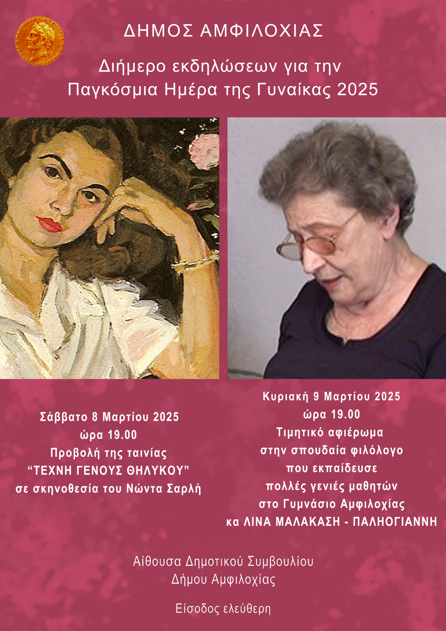 Διήμερο εκδηλώσεων για την Παγκόσμια Ημέρα της Γυναίκας 2025 από τον Δήμο Αμφιλοχίας