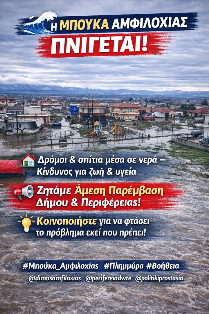 «Οι κάτοικοι έχουμε ήδη καταθέσει επίσημη αναφορά στον Δήμο Αμφιλοχίας και πραγματοποιήσαμε διαμαρτυρία στο Δημαρχείο. Παρ’ όλα αυτά, μέχρι σήμερα δεν έχει υπάρξει καμία ουσιαστική παρέμβαση αποστράγγισης ή τεχνική λύση», αναφέρει καταγγελία των κατοίκων της Μπούκας. Σημειώνουν μάλιστα πως ενημερώθηκαν ότι η Περιφέρεια δεν έχει λάβει καν την αναφορά, με αποτέλεσμα ο οικισμός να παραμένει πλημμυρισμένος χωρίς καμία βοήθεια.