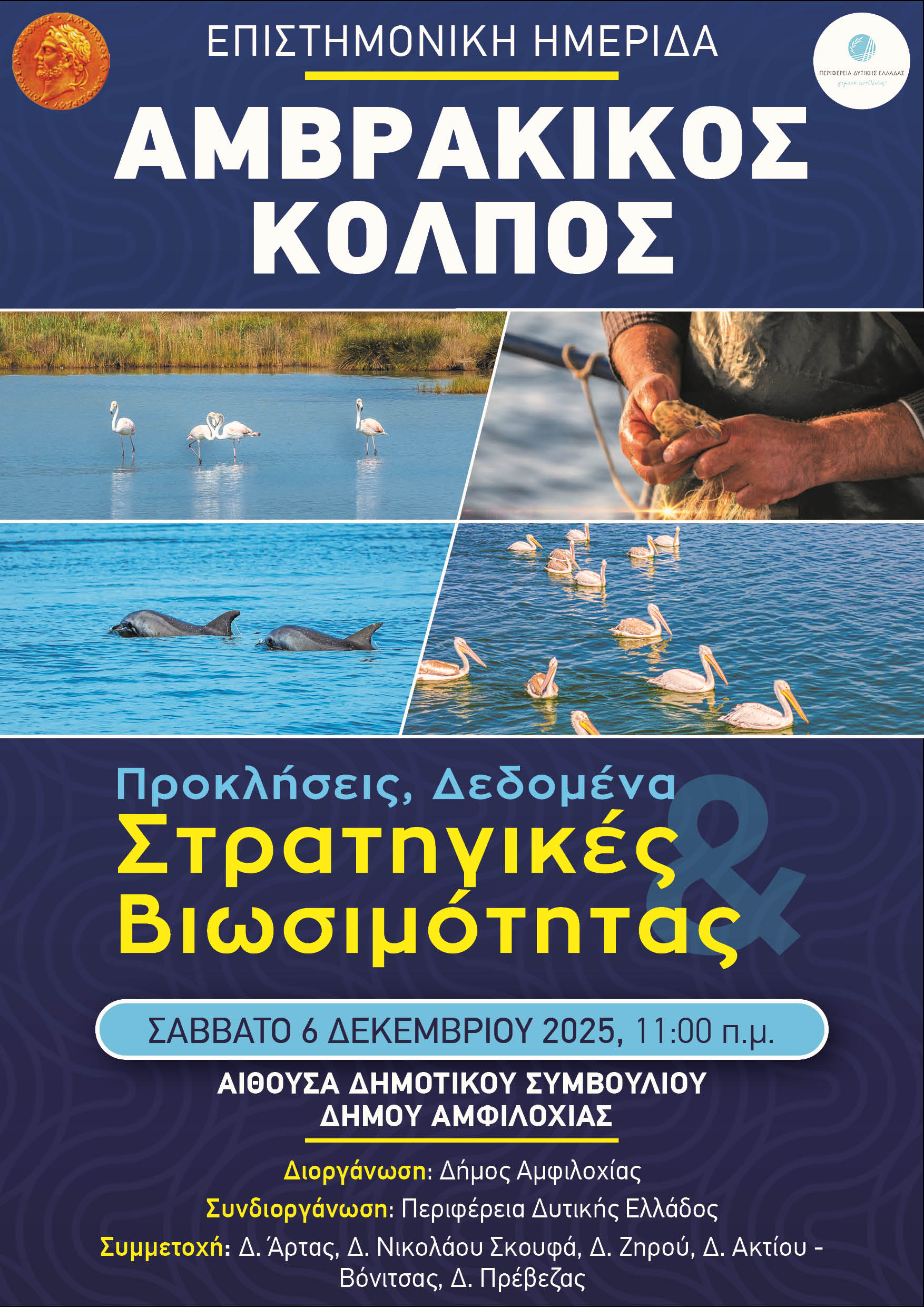 Το Σάββατο 6 Δεκεμβρίου η ημερίδα για τον Αμβρακικό Κόλπο και τις Στρατηγικές Βιωσιμότητας από τον Δήμο Αμφιλοχίας σε συνεργασία με την Περιφέρεια Δυτικής Ελλάδας